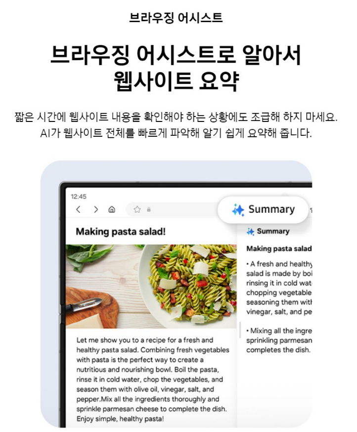 멀티태스킹 중에도 몇 번의 터치 만으로 간편하게 정리 노트를 만들 수 있어요. 노트 어시스트가 녹음을 텍스트로 변환하고 노트에 내용도 요약해줘요.